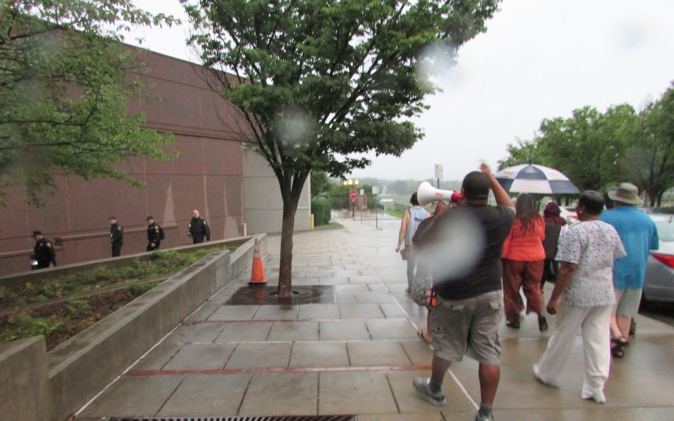 About 15 people marched into the Forsyth County Law Enforcement Detention Center on Monday evening to express support for Yolanda Dillard, an inmate who they contend is not receiving proper medical care, and to call attention to the deaths of two black men in the jail last month. Correct Care Solutions, a private medical provider, holds the contract for medical care in the jail.