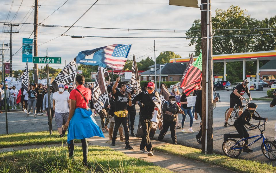 Much of the protesters’ anger was directed at Alamance County Sheriff Terry Johnson due to his conspicuous friendliness with neo-Confederates and one-sided enforcement against antiracists. The sheriff’s cooperation with US Immigration Customs Enforcement has also drawn protest, and a group of Latinx people carrying Salvadoran and Mexican flags joined the march. Deepening protesters’ unhappiness with Johnson, a recent outbreak of COVID-19 in the Alamance County jail has put detainees’ health at risk.
