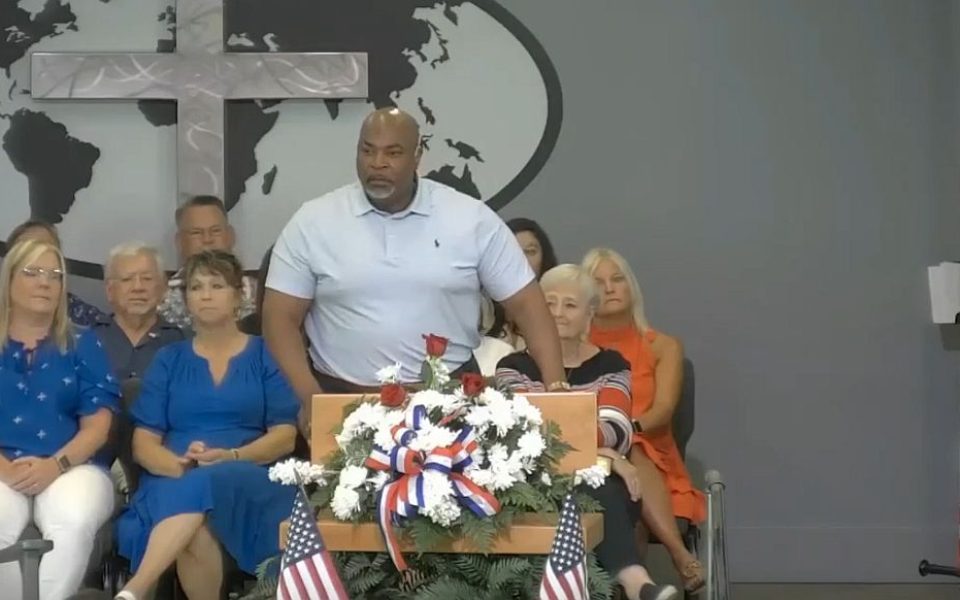 Featured photo: Lt. Governor Mark Robinson speaks at The Lake Church in Bladen County. (Photo: Screengrab from Lake Church/ Facebook Page)