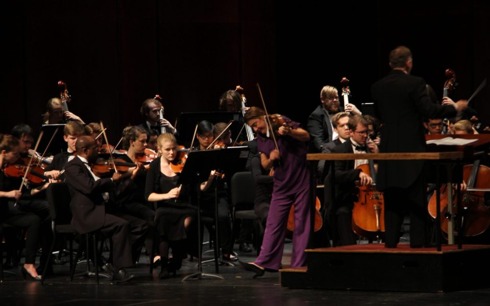 After Dance Suite, Sonnenberg joined the orchestra, standing next to the conductor, for Max Bruch’s “Violin Concerto No. 1 in G minor.” She traded licks with the orchestra, a seemingly docile affair for the wild woman that snapped a bow hair.