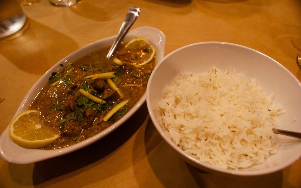 Unlike the creamy, orange butter chicken, which also comes with a large bowl of rice, the flavors of the nihari’s gravy can be somewhat muted if poured fully into the rice bowl. It’s better to add spoonfuls of rice to the metal serving tray the nihari arrives in, while the rich butter chicken is only enhanced by the side item and can be poured over it liberally. Don’t treat the lemons as a garnish; squeeze both pieces over the dish for full effect.