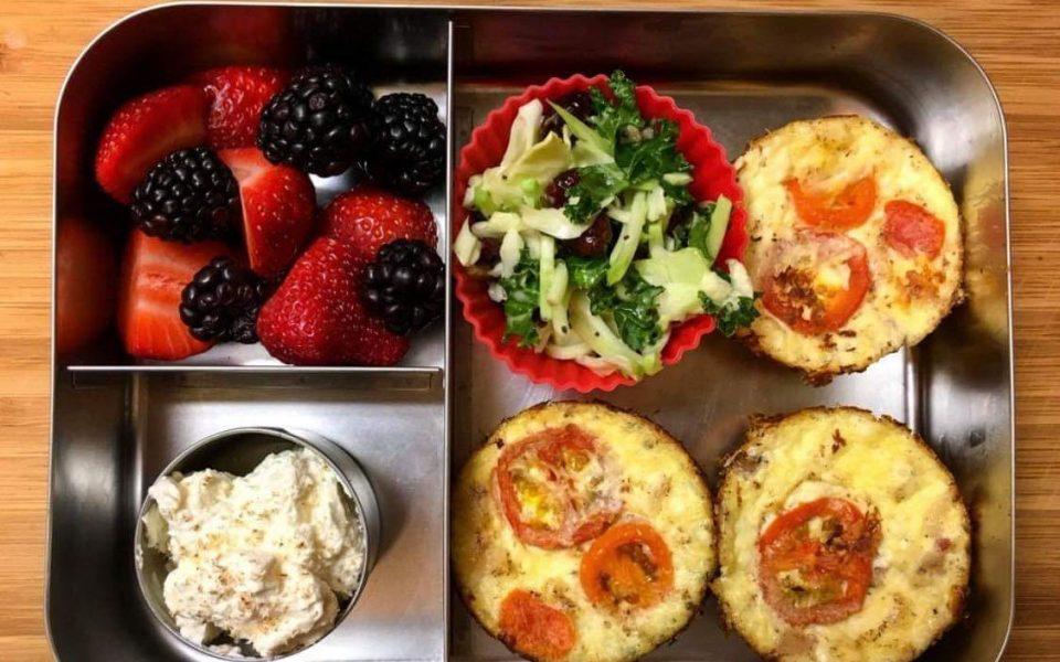 One day it could be an egg wrap with prosciutto, greens with sweet balsamic dressing, cherry tomatoes and blackberries with almond-flour shortbread cookies dipped in orange dark chocolate. On another, they might find mini pancetta and goat-cheese quiches with tomatoes, kale-and-cabbage salad with mixed berries and vanilla whipped cream under the lid.