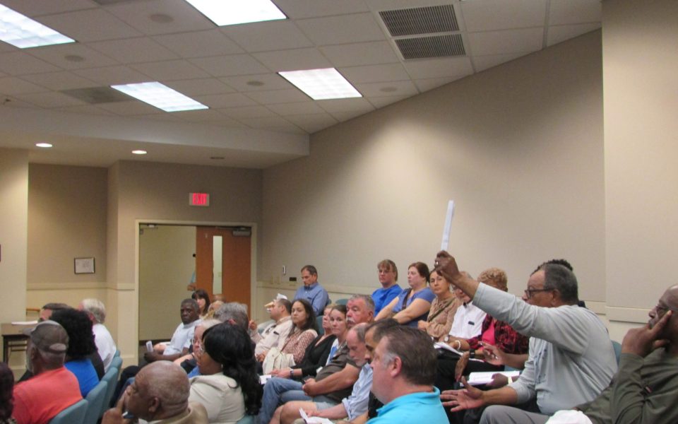 John Polite, a retired sheriff’s deputy who lives on a lane north of the proposed landfill, asked everyone opposed to rise. About 25 people, roughly half the room stood, and then filed into a narrow hallway as members of the planning board moved on to the next item in their agenda on Thursday. Chris Murphy, the deputy director for inspections, fielded questions outside in the hallway, while Margaret Bessette, the assistant director for planning, collected phone numbers so that neighbors could receive notice of the county commission hearing, likely sometime next month.