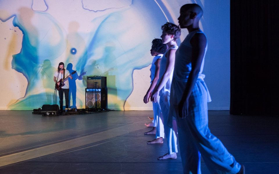 The collaboration adds a moving and even haunting element to Simoneau’s repertoire. As Draughon stood at the back of the stage, painted in the kaleidoscope of liquid light projection by Hawkins, the dancers allowed the music to ebb through their bodies, augmenting the beauty of this blending of art forms coming together. And while there were still two nights of performance left, there was a feeling of power and beauty as eyes rested on the twisting and hypnotic images projected and bodies moving on stage, knowing that this dance will never be performed in the same way again.