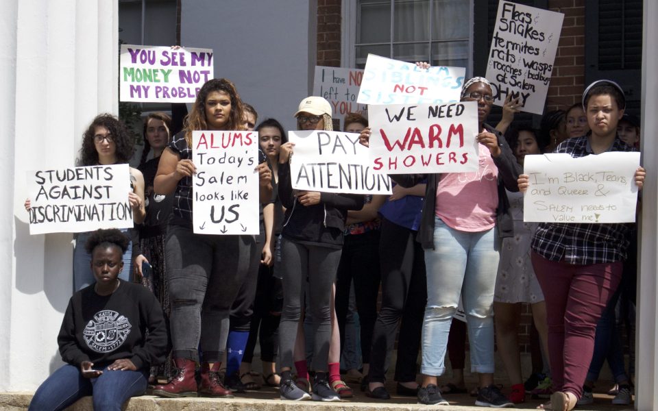 A student sit-in at Main Building on the campus of Salem College to protest living conditions, racism, transphobia and poor mental health continued into the second day on Tuesday.