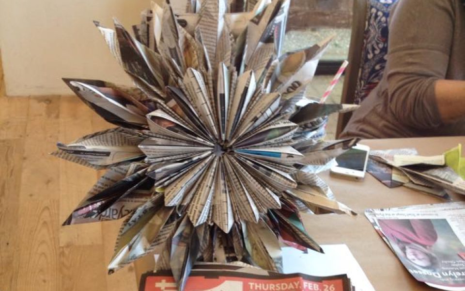 Local artist Paige Cox is turning old Triad City Beat newspapers into these beautiful pieces of art for the Greensboro Anthropologie store’s window display this Earth Day!Want to make an art project out of old issues, or need copies for some other purpose like moving? Let us know. All old copies of Triad City Beat are recycled of course, but we’d be happy to give them to you first.