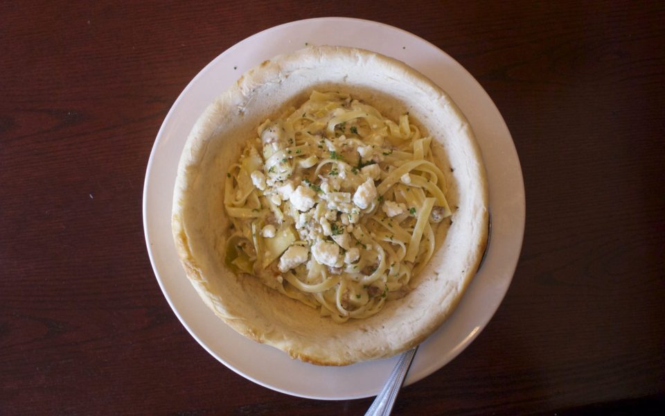The bread bowl is a sight to behold, a soft and chewy creation that still somehow holds its firm shape against any manner of sauce. As the rich Alfredo and chunks of gorgonzola melted into it, the bread earned its rightful place as part of the dish. Even as I enjoyed each bite, particularly the crumbled sausage with the pasta, I couldn’t help but think of other arrangements. Maybe the sweet sausage would be better with a red sauce, or maybe I should’ve added mushrooms as I had considered originally.
