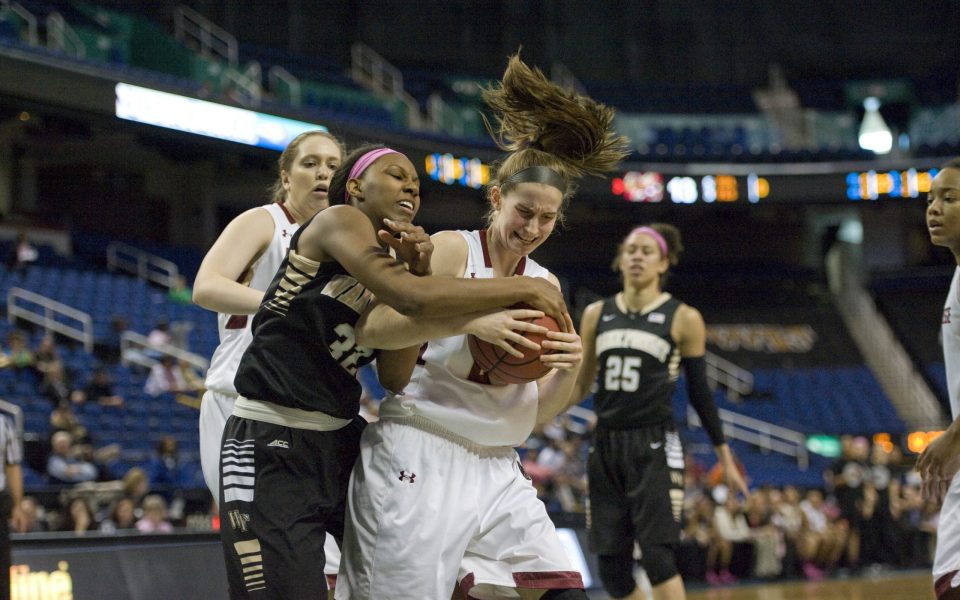Feature photo (above): Wake Forest’s Milan Quinn and Boston College’s Rachel Gartner fight for possession of the ball in the ACC tournament opener.