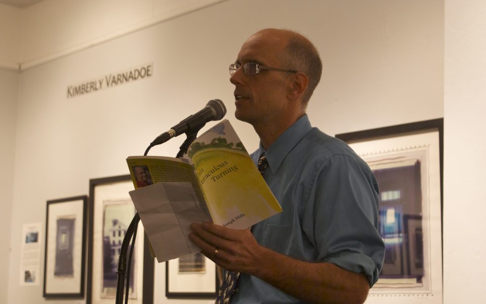 When Press 53 first decided to publish poetry, Mills was selected alongside Greensboro’s Valerie Neiman as the inaugural writers out of a field of more than 100 submissions from six continents. Years later, Mills has put out five books with the local press, and feels like This Miraculous Turning is his best yet. The week of the reading, as Press 53 celebrated its ninth anniversary, publisher Kevin Watson received an email asking to feature a poem from Mills’ new book on the popular radio show “The Writer’s Almanac” on Oct. 12. Three poems into his reading, Mills jokes that he’ll do a better job with “First Skating Party” than radio host Garrison Keillor will, just one of a series of comments that elicits laughter from his rapt audience.