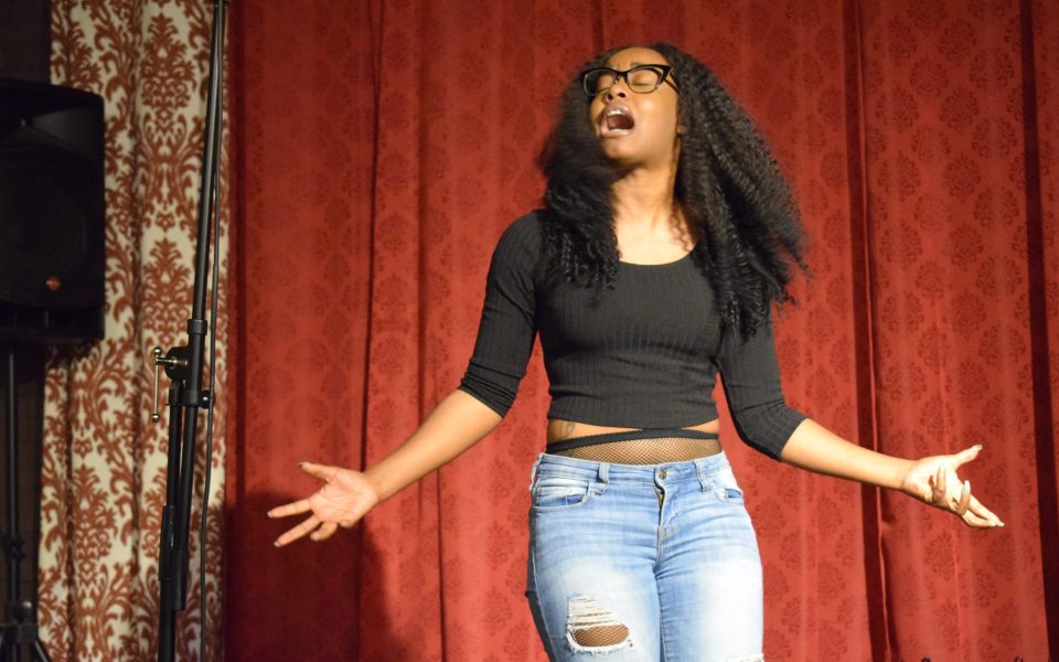 Ayanna Albertson, too, began in song. After a few lines of Etta James’ “All I Could Do Was Cry,” she recounted seeing her ex-boyfriend with another woman and shared a list of 10 truths about the healing process. She relied on everything from too much ice cream and blasting trap music to realizing that: “4. He wasn’t yours to begin with/ Faithful men cannot be stolen/ Happy homes cannot be broken.” Early on, Albertson demonstrated a masterful ability to oscillate between humor and solemnity, eliciting both laughter and empathetic “Mmh’s” from the crowd. Every poem’s final words packed a punch: “And remember — Adam needed Eve, not the other way around.”
