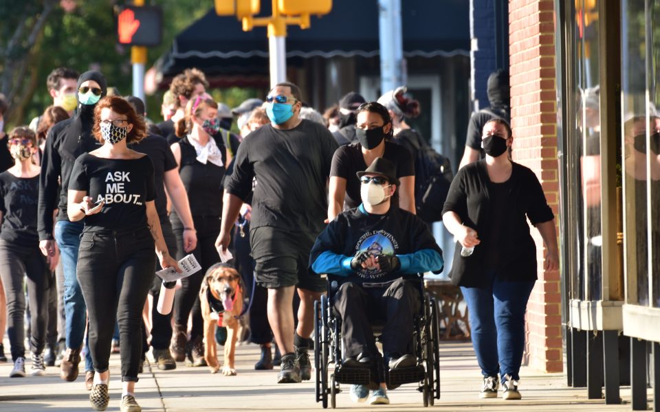 At 7:30 p.m. on Thursday, a Graham police officer told Mayor Peterman he was being summoned to the command center. Five minutes later, an Alamance County Sheriff’s cruiser circled the courthouse announcing, “A state of emergency has been imposed, and we have a 9 p.m. curfew.” The curfew, which was issued by the city of Graham, was soon amended to 8 p.m., and Peterman notified the walkers in person.
