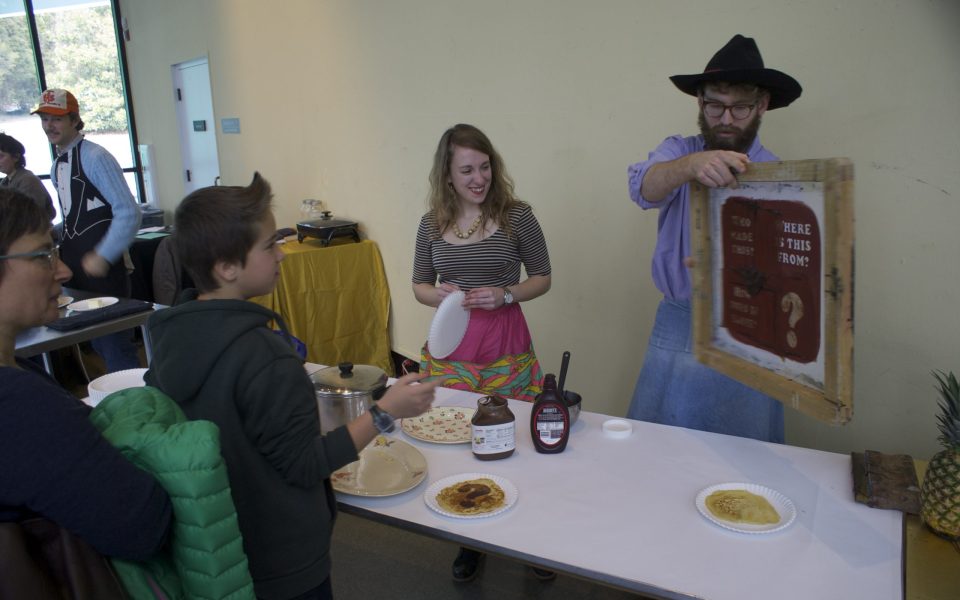 If Peter Pan’s Lost Boys somehow landed in art school and were then thrown into the weirdest museum in the region (Elsewhere, of course), they’d probably create something like the recent Pancake Social art/food hybrid event.