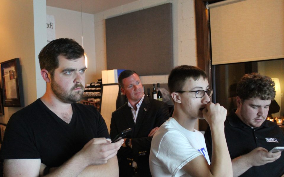 At a watch party at 1618 Wine Lounge in Greensboro, Garrett and his supporters watched results slowly roll in with plaintive looks.