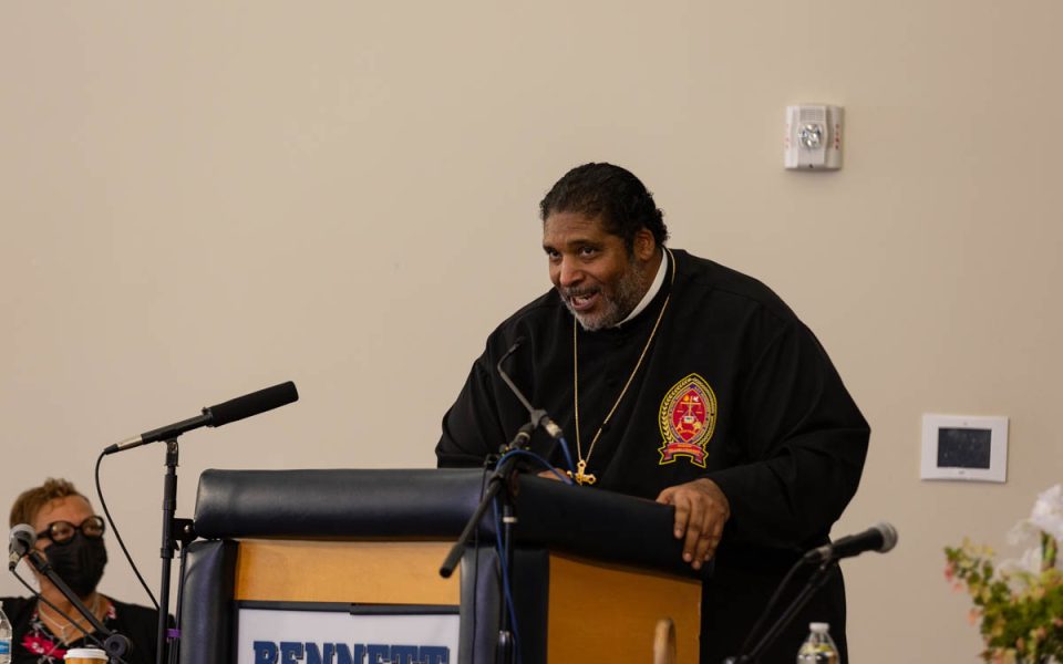 Featured photo: Rev. Dr. William J. Barber speaks to attendees of the NC Truth, Justice, and Reconciliation Commission Summit at Bennett College.