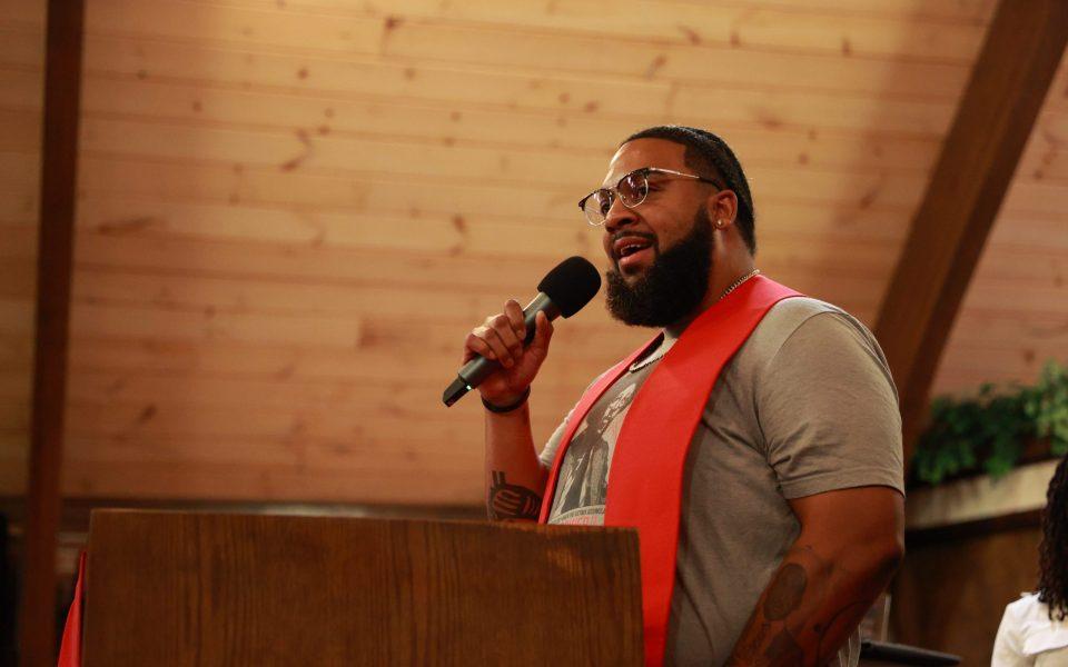 Rev. CJ Brinson speaks at the Revival Reimagined event on Aug. 3. (photo by Brandon Demery)