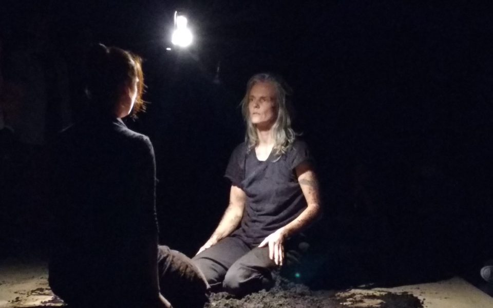 “Adam-mah,” — a play-on-words of the Genesis story in the Bible and the Hebrew word “adamah” meaning “earth” — was an intimate and invasive performance, where almost every audience member was given a participatory role. One participant was even picked up and lifted off the ground in a bear hug, testing the boundaries between performer and audience.