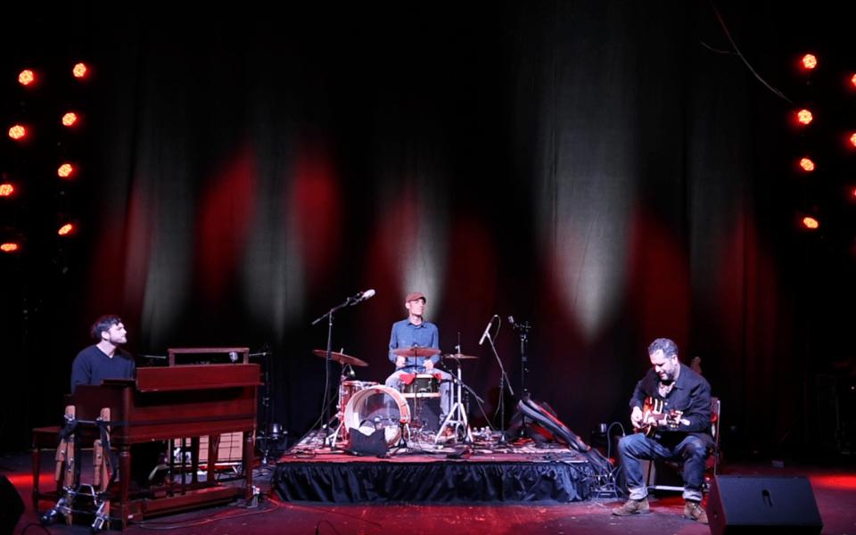 Featured photo: (L-R) Sam Fribush on the keys, Nick Falk on the drums and Charlie Hunter performing at the Ramkat for their Home Sweet Home series in March.
