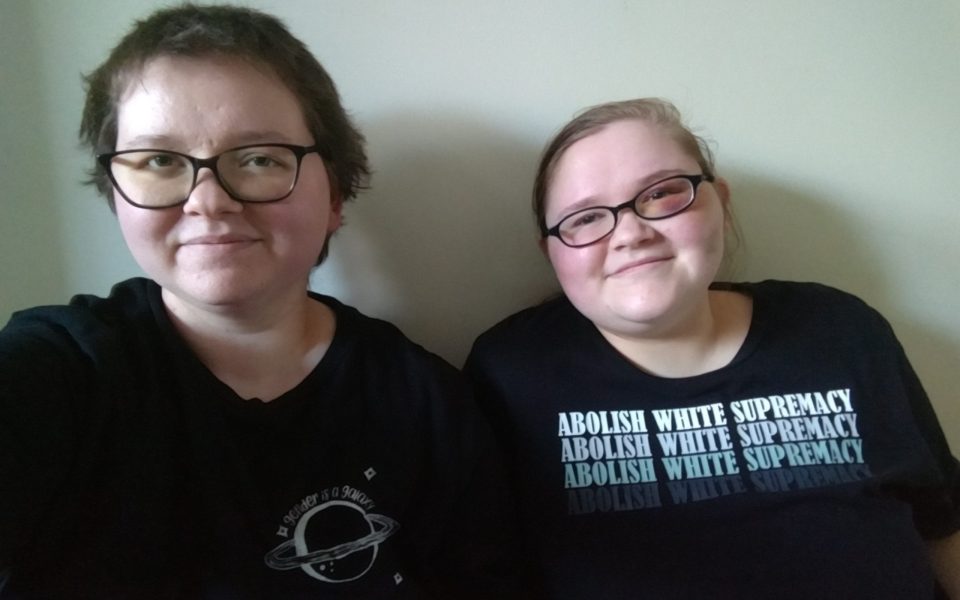 Olivia Pugh (right), shown with their sibling Nova Tempest, suffered an attack in a dentist office parking lot by a man apparently angered by their signs expressing support for Black Lives Matter. (courtesy photo)