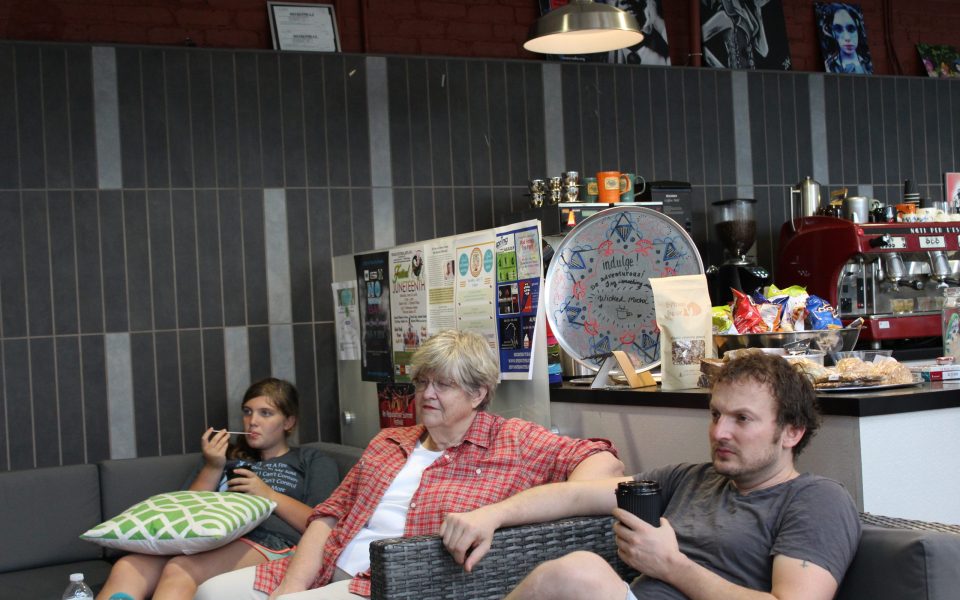 At that moment a mix of young teens and adults gathered at the Coffee Park Downtown in the Milton Rhodes Center for the Arts in Winston-Salem to listen to him recite excerpts from Jaqueline Woodson’s novel, Brown Girl Dreaming, on July 7.