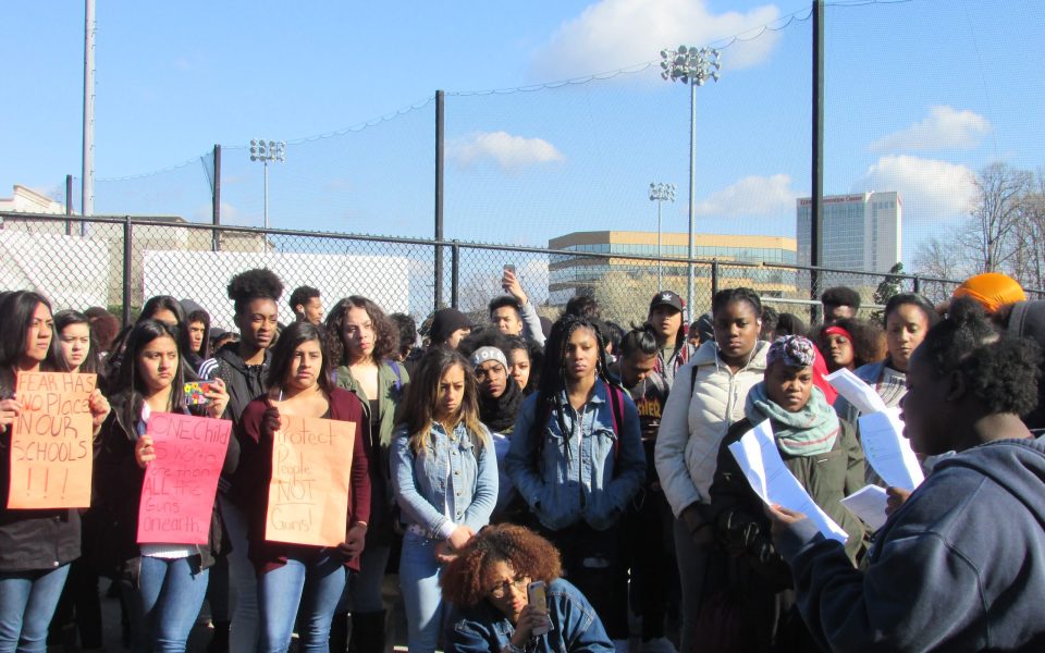 Hundreds of students at Smith High School in Greensboro walked off campus at 10 a.m., converging at a soccer field in a defiant but orderly protest, as part of national school walkout to call for action on gun violence.
