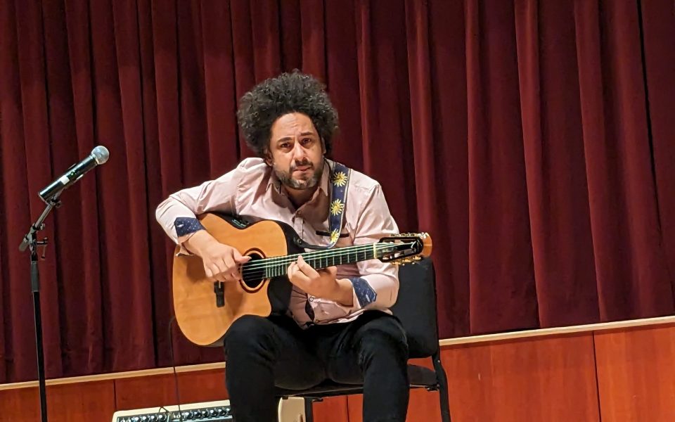 Featured photo: Diego Figueiredo, a Brazilian jazz artist playing at the Southern Guitar Festival (photo by Beckett Clarey)