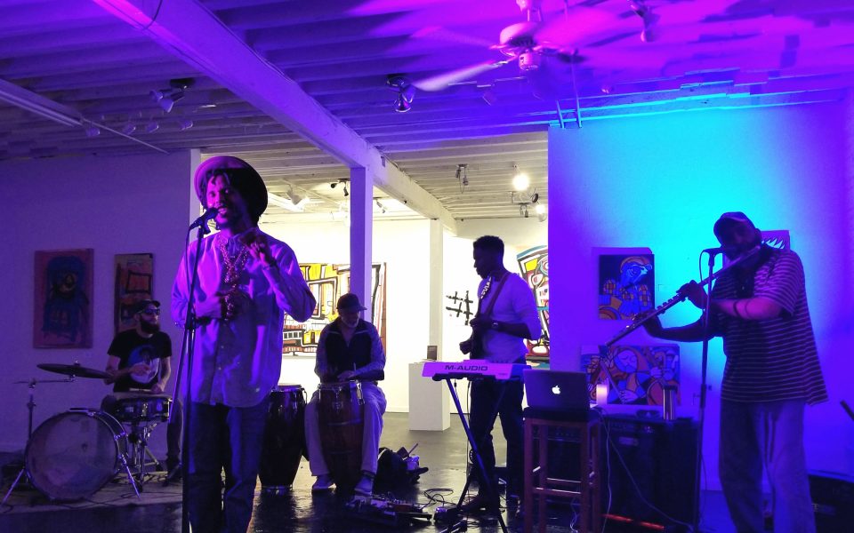 Larry Barron, most widely known as LB the Poet, stood to his full, massive height over the lone microphone at Delurk gallery. Scattered in a half circle behind him were the musicians who made up the improv collective Glenn Sound System: Drums, alto saxophone, guitar, keyboard, congas and hand percussion provided a smooth, eclectic backdrop to the night’s poets.