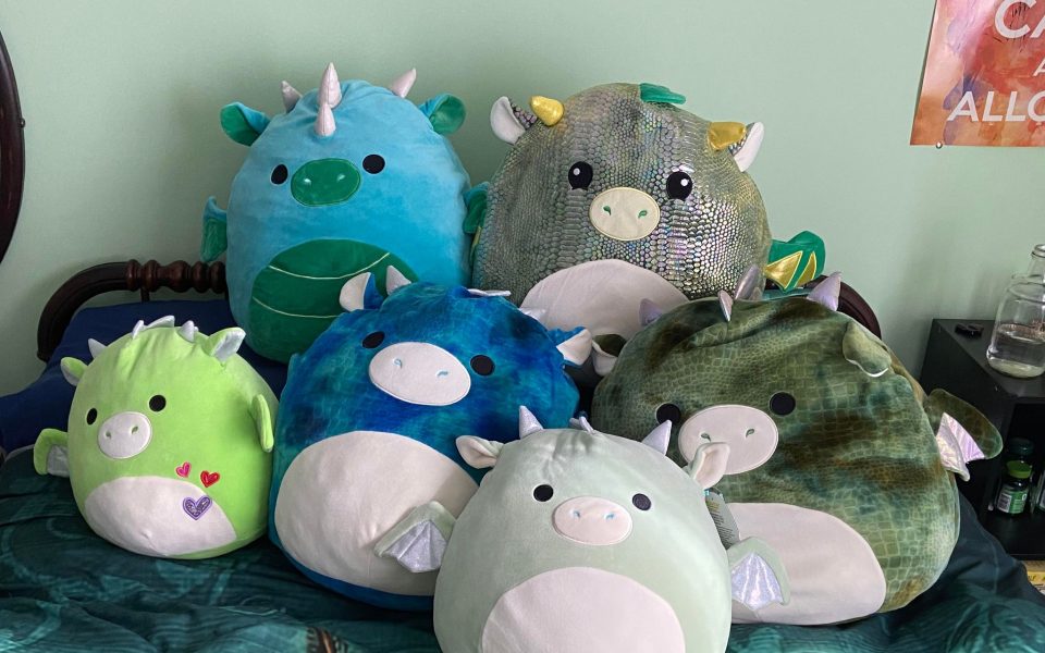 Featured Photo: Margaret Silver’s dragon collection has grown by six since she discovered Squishmallows. Photo by Margaret Silver.