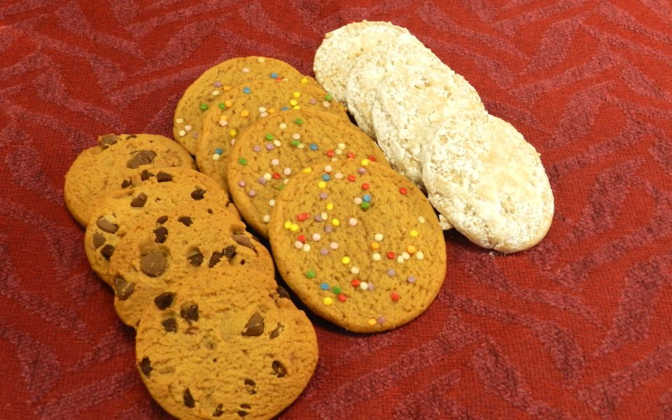 Hundreds of thousands of little nuggets of cookie dough are pressed out and dropped onto a fast-moving conveyer belt. In eight minutes, the dough becomes puffy, crispy and transforms into the cookies that grace various dining and coffee tables during the holidays each year. Then, they’re cooled down and packed into clear plastic tubs for national distribution to a grocery chain.