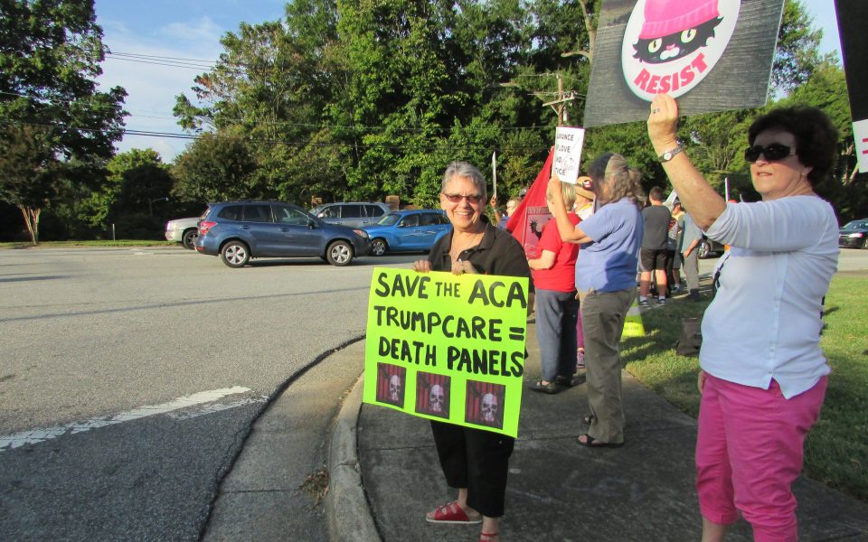 Residents from Forsyth and Alamance counties gathered at a busy intersection in Winston-Salem at rush hour on Monday to protest the most recent effort to repeal the Affordable Care Act, and the next day the bill was dead.