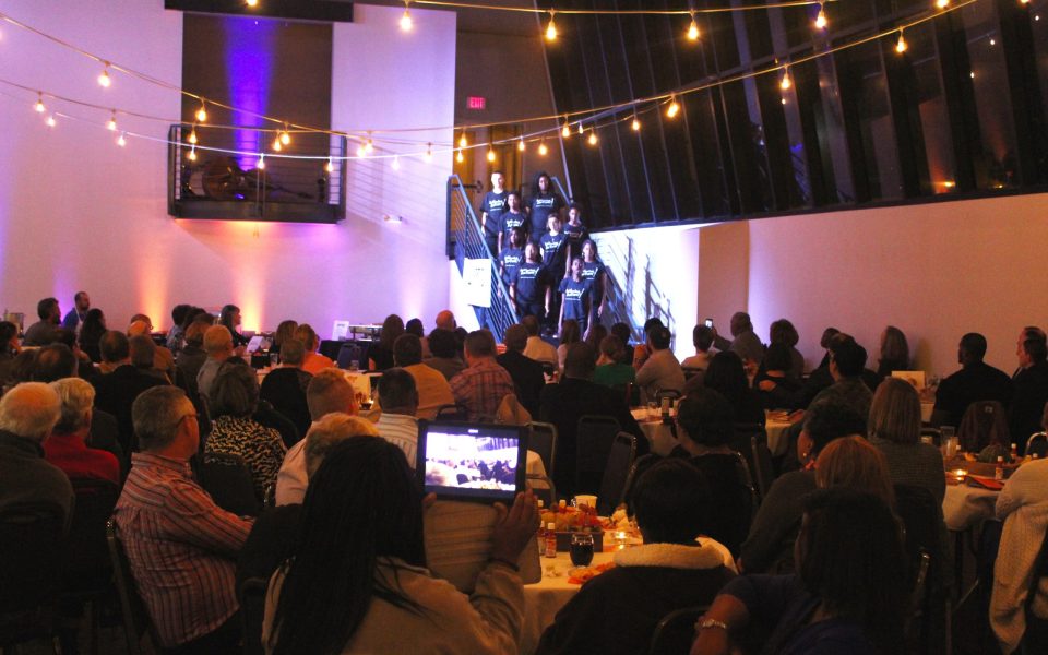 The room fell silent as about a dozen teenagers took over the staircase in the back of the room, turning to face the crowd seated around tables with white linens. Restaurateur Kris Fuller stood near the door, listening alongside the owners of Winston-Salem’s beloved Sweet Potatoes. At a table in the back of the room, KimBees tea company owner Kimberly Brown of Greensboro watched with rapt attention, and someone else at the table filmed the performance on an iPad.
