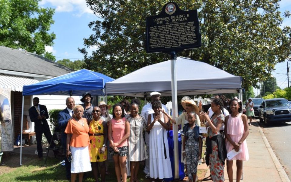 In brown folding chairs and along the perimeter, an audience has gathered for the public unveiling of a city historical marker at the white-brick home of Lowman Pauling, songwriter, guitarist and founder of the “5” Royales, an all-male R&B quintet also including Obadiah Carter, James Moore, Eugene Tanner and John Tanner, all of whom passed away years ago.
