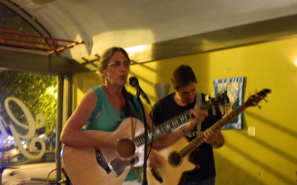 Allyn and her co-conspirators moved through her compelling repertoire: the simple, affecting “Rescue Me” evoking the emotional surrender of a personal bottoming out; the delightful lyricism of “Sweet Summer” (“Cut-off T-shirts and a pair of sneakers/ Meeting new friends in the back of the bleachers/ Eyes glance from head to toes/ Well, it’s summer time and anything goes”); and the cautionary urban sensibility of “Sugar,” a song that but for its acoustic instrumentation wouldn’t be out of place in an early ’70s Blaxploitation film.