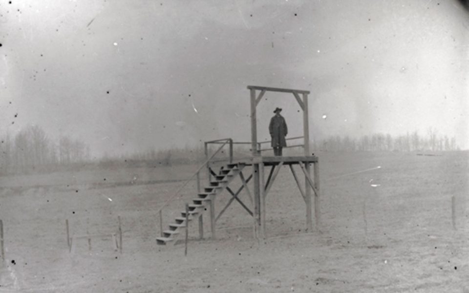 DeGraff took the gallows in a new black suit and hat, a Bible in his hands. After some words by Sheriff McArthur and a prayer from the Rev. Mr. Brown, the condemned man spoke.