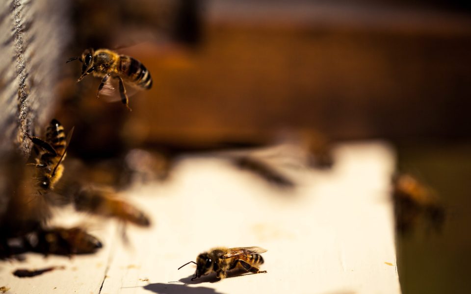 “Honey is just nectar from flower blossoms that the bees have processed,” Mullins says. “People think it goes through their digestive system, but that’s not true. They have a honey tank; the nectar mixes with 31 enzymes that the bees produce.”