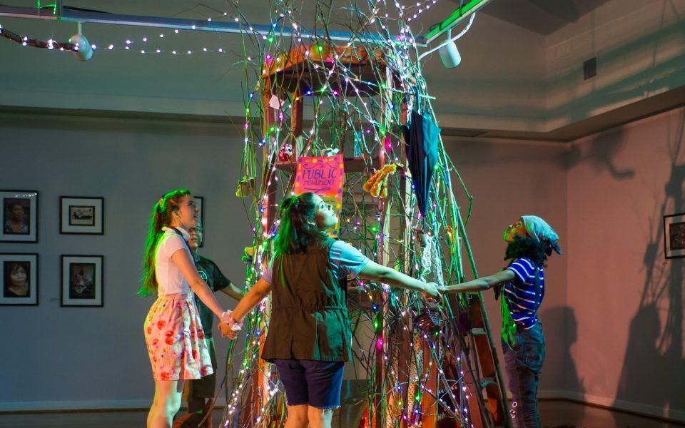 Lithe branches floated over the heads of The Sky Game’s audience as the children’s faces beamed with wonder. The play’s main characters, too, gazed upward toward the sound of wind chimes, hearts soaring in harmony with ethereal soundscapes as they visited their imagined “Level of the Clouds” on June 23.