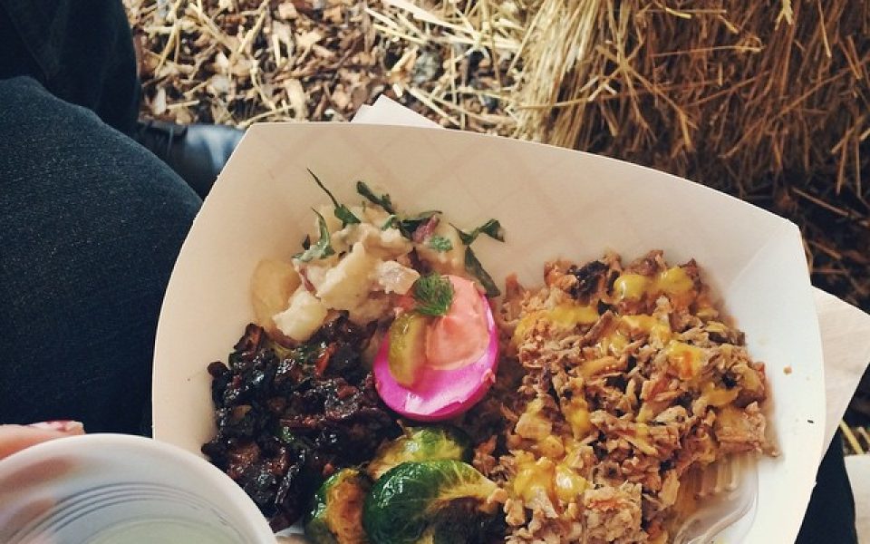 [Photo: A gimlet with Sutler’s Spirit gin at the distillery’s launch party, alongside some of the food provided. Photo by Kacie Ragland.]