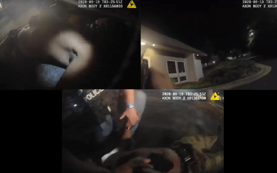 “Are you hurt?,” asks an officer, at the 5 minute 55 second mark.