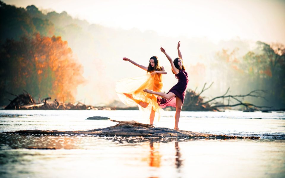 In “Shoal Dancers” Emiliee Harney and Natalie Kirk, also students, embody exactly that intuition in a wild and rocky stretch of the river between Yadkin and Surry counties, a home to a pair of bald eagles according to the project. Harney and Kirk are ethereal, cloaked in feminine marigold and merlot-colored dresses.