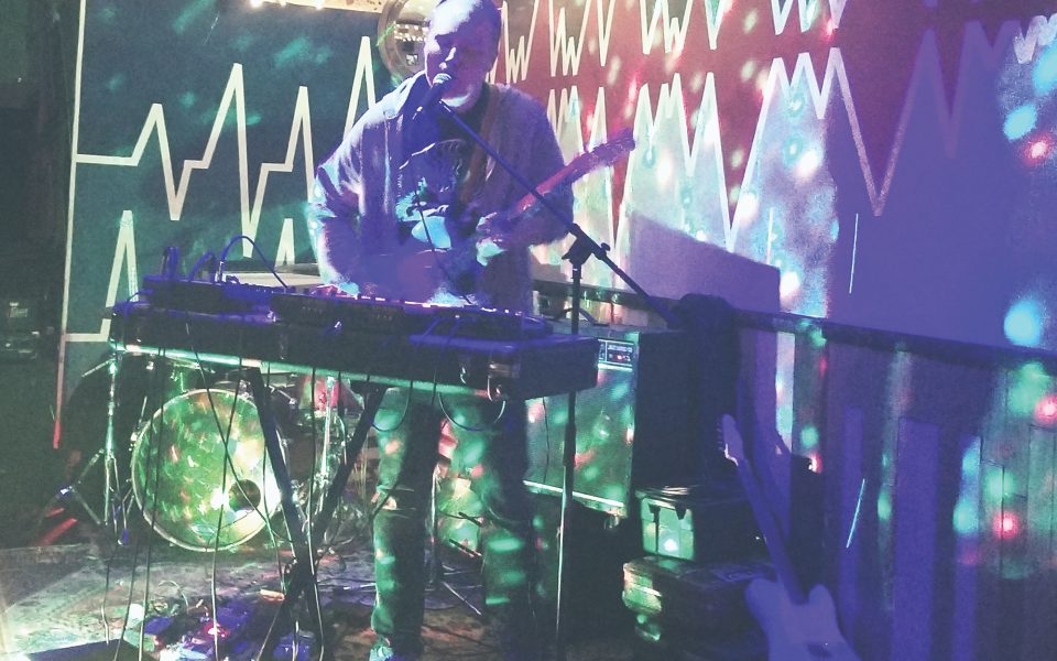 About 14 different effects pedals lay fanned out across the stage by his clean white shoes, a few synth pads and mixers and loopers lying on the closed guitar case set before Pat Brown, the man behind Greensboro-based synth pop band Tide Eyes. Amid the pedals, roughly 50 buttons and knobs, dozens more on the table within arms’ reach right before him. Moving from song to song, Brown hit each pedal with precision, and adjusted knobs for perfect sound, his finger’s dancing along the stings of his guitar with natural ease. The setup, with a surfeit of blinking lights, would be enough to overwhelm or deter most any musician who didn’t know what they were doing. But for Tide Eyes, it just makes sense.