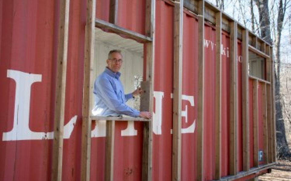He worked as an appraiser in the Des Moines Tax Assessors office and taught at a community college there in the early ’70s. Through his teaching job, Williams had the opportunity to attend a seminar on alternative building techniques at the University of Minneapolis, which instigated his interest in earth-covered homes. He came to Kernersville in 1995 at his sister’s prompting to help with a downtown revitalization plan and wound up working as an IT at the Winston-Salem Journal before retiring after 15 years. He started retrofitting shipping containers for housing as a retirement hobby last spring, and people began seeking him out for advice when he posted photos of his handiwork on Facebook and Pinterest.