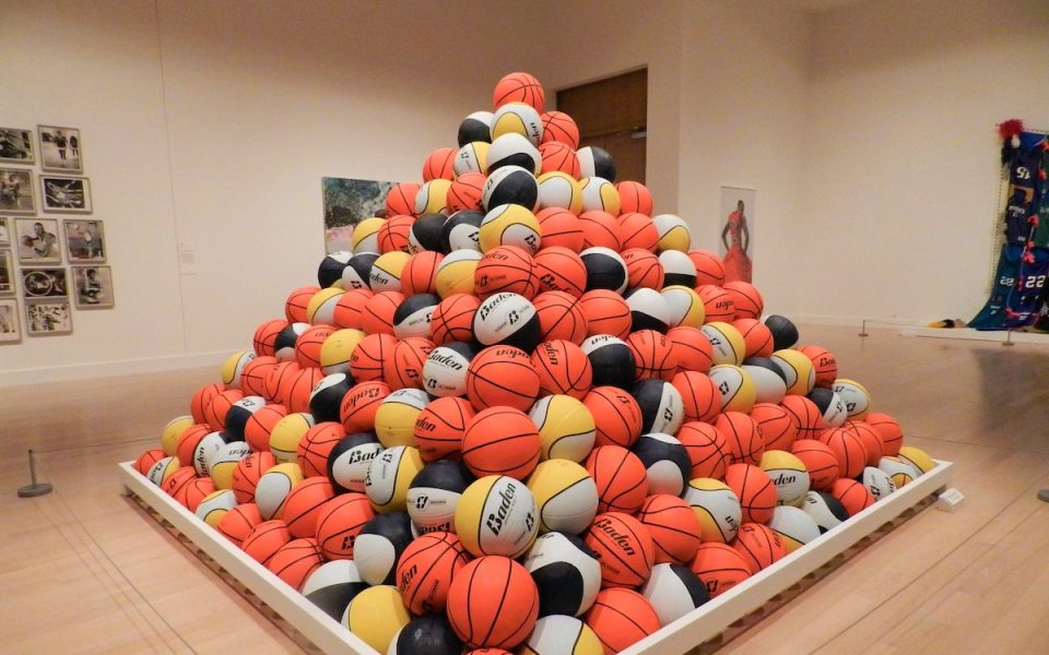 in the Weatherspoon Art Museum’s latest exhibition, To the Hoop. The museum’s second-floor gallery houses a selection
