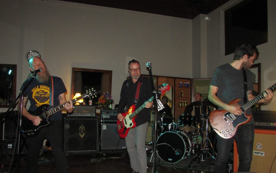 Totally Slow played a surprising angle with their presentation of Bleed Out, the singularly excellent album they released on Sept. 16, opening their set with the reprise of the title track. Similar in feel to Loaded-era Velvet Underground song “Ocean,” “Bleed Out (Reprise)” is an atmospheric antidote to the loud and fast approach predominating on the rest of the album. In keeping with the communal feel of the night, the band accepted assistance from friends, including Sprague and producer Kris Hilbert, on a battery of augmenting instruments, including trumpet, keys and lap steel. Then the auxiliary musicians slipped back into the audience, leaving the band’s four core members to level the place.