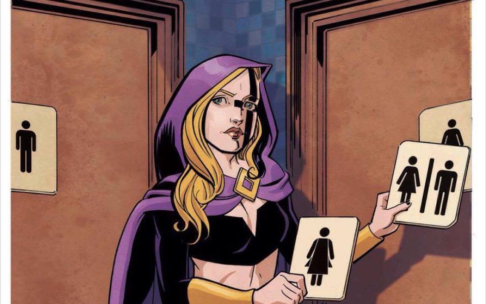 This week, Bret Parks, owner of Winston-Salem’s SSalefish Comics, announced that he has commissioned a version of Alters No. 1 that will feature a cover illustration of Chalice fighting against North Carolina’s HB 2 “Bathroom Bill,” that among other things limits restroom choices for trans individuals and in fact denies that there even is such a thing as trans people.