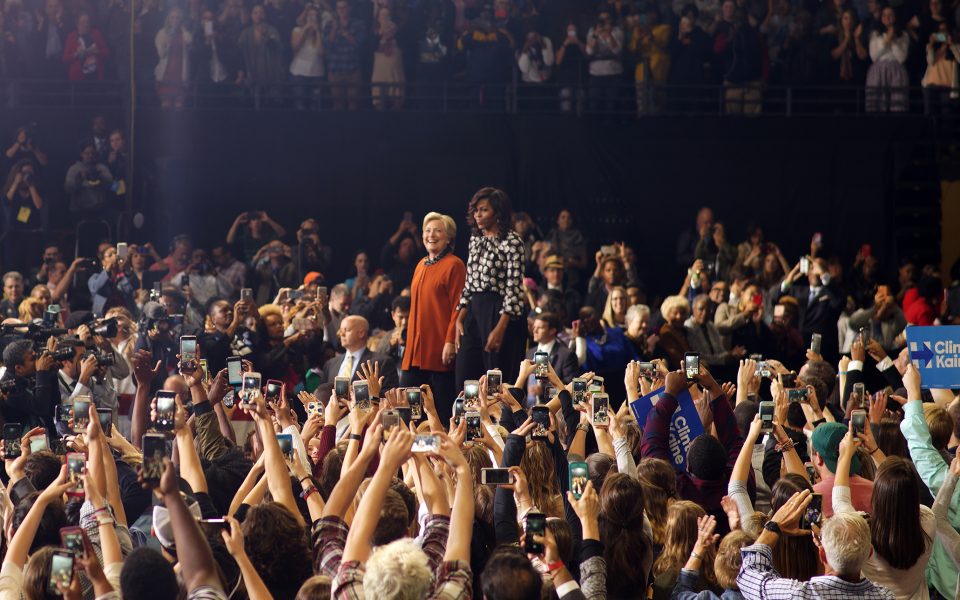 The man adjusted his “Hillary for President” hat and shook his head no, as did all of the other vendors who walked past the 10,000-person line that slowly inched its way toward the door. We’d been standing outside for hours, excitedly shifting from foot to foot as we waited to see Hillary Clinton and Michelle Obama in their first joint campaign appearance, and we still had at least two hours to go.