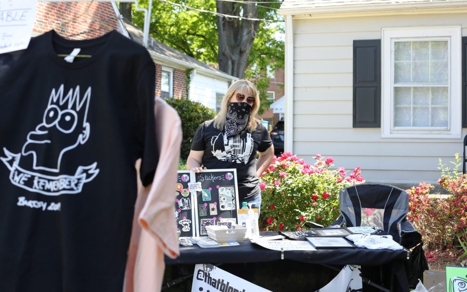 Vikki Vassar, a Winston-Salem based artisan, created an online store where she sells Camel City-centric art she originally made for the Ardmore Art Walk on May 8. Vassar’s items include T-shirts, prints, paintings, and stickers inspired by Winston-Salem’s pop culture. Vassar also creates original art and custom portraits. She’s a regular contributor to the Winston-Salem Memes Facebook group where she mines ideas. Shop Vassar’s creations at thatblondegirlvikki.bigcartel.com and houseofrodan.com. (photo by Jerry Cooper)