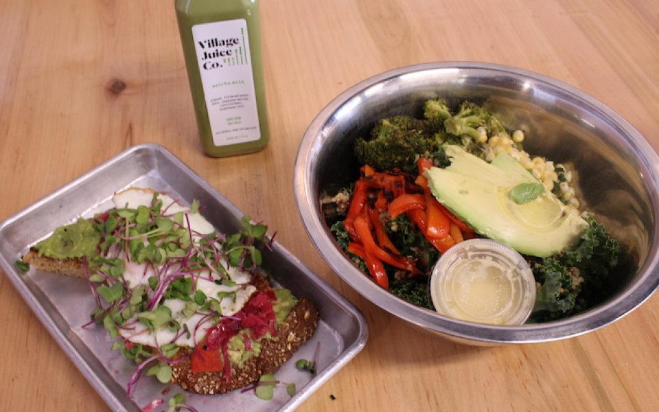 Village Juice’s base menu offers variations on the prized avocado toast and customizable salad and grain bowls.