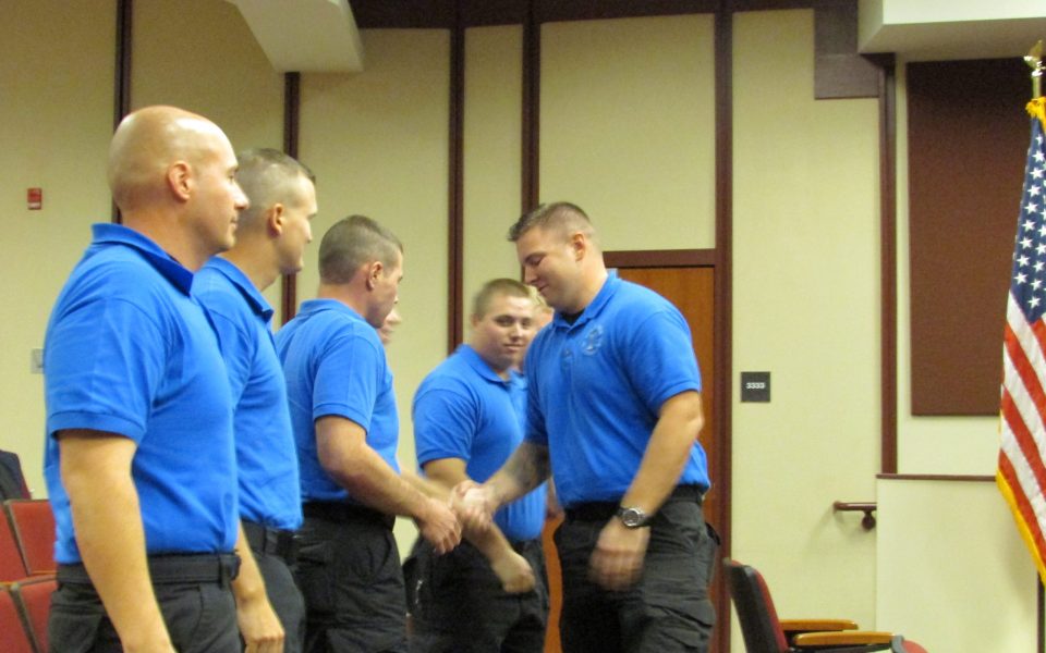 “You also saw on TV and on Facebook and you read in the newspapers how law enforcement officers were considered to be abusers of power,” he said to the class of six white men and one Latino. “You saw how we took people’s rights away. You saw how we even killed people in cold blood. You saw in the media some officers get tried for murder or murder with a depraved heart or some level of manslaughter.”