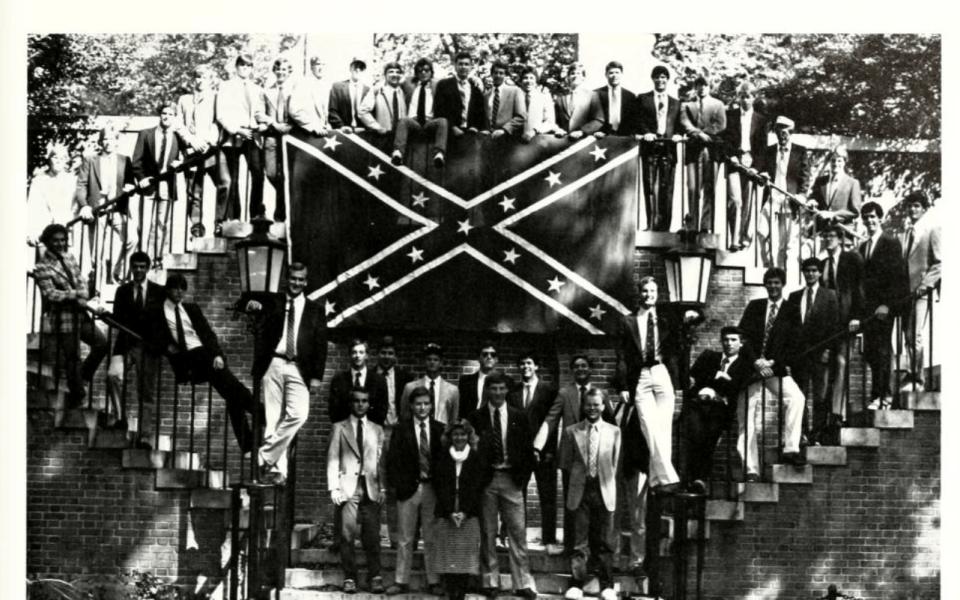 Although the resolution did not name them specifically, Dean of Admissions Martha Blevins Allman and Associate Dean of Admissions Kevin Pittard both appear in The Howler posing with a large Confederate flag as part of the Kappa Alpha Order fraternity group photo. A review by TCB also revealed that J. McLain Wallace, general counsel for Baptist Hospital, posed with the Confederate flag as a member of Kappa Alpha Order. Ben Sutton, a Winston-Salem investor who serves on the university’s board of trustees, graduated from Wake in 1980 as a member of Kappa Alpha. The fraternity didn’t display the Confederate flag in the 1980 yearbook, but historically venerates Robert E. Lee and held an Old South Ball during the period when Sutton was a student.
