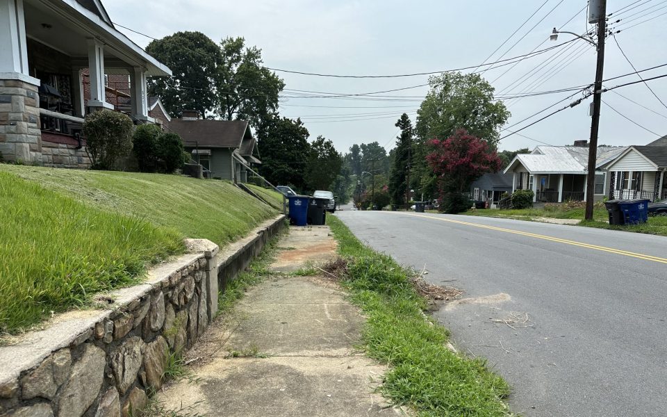 Between Gray Avenue and the intersection of North Cameron Avenue and 8th Street, overgrown weeds currently obstruct the sidewalk running along Mount Zion Place. There are also places where the sidewalk is bumpy — for example, on North Jackson Avenue. Heading east on 11th Street toward North Cameron Avenue, there’s a steep incline. For a pedestrian with a walker or a cane, these obstacles can pose a challenge. According to WalkScore.com, Winston-Salem’s average walkability score is 22, while Greensboro’s is 29. The neighborhood of Reynoldstown has a walkability score of 56 while downtown has a walkability score of 79 and sits approximately a mile and a half away.