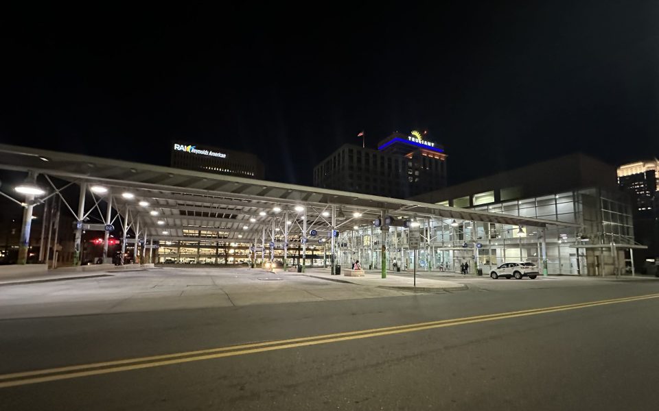 Featured photo: Clark Campbell Transportation Center, downtown’s bus hub sandwiched between Trade and Liberty streets. (photo by Gale Melcher).